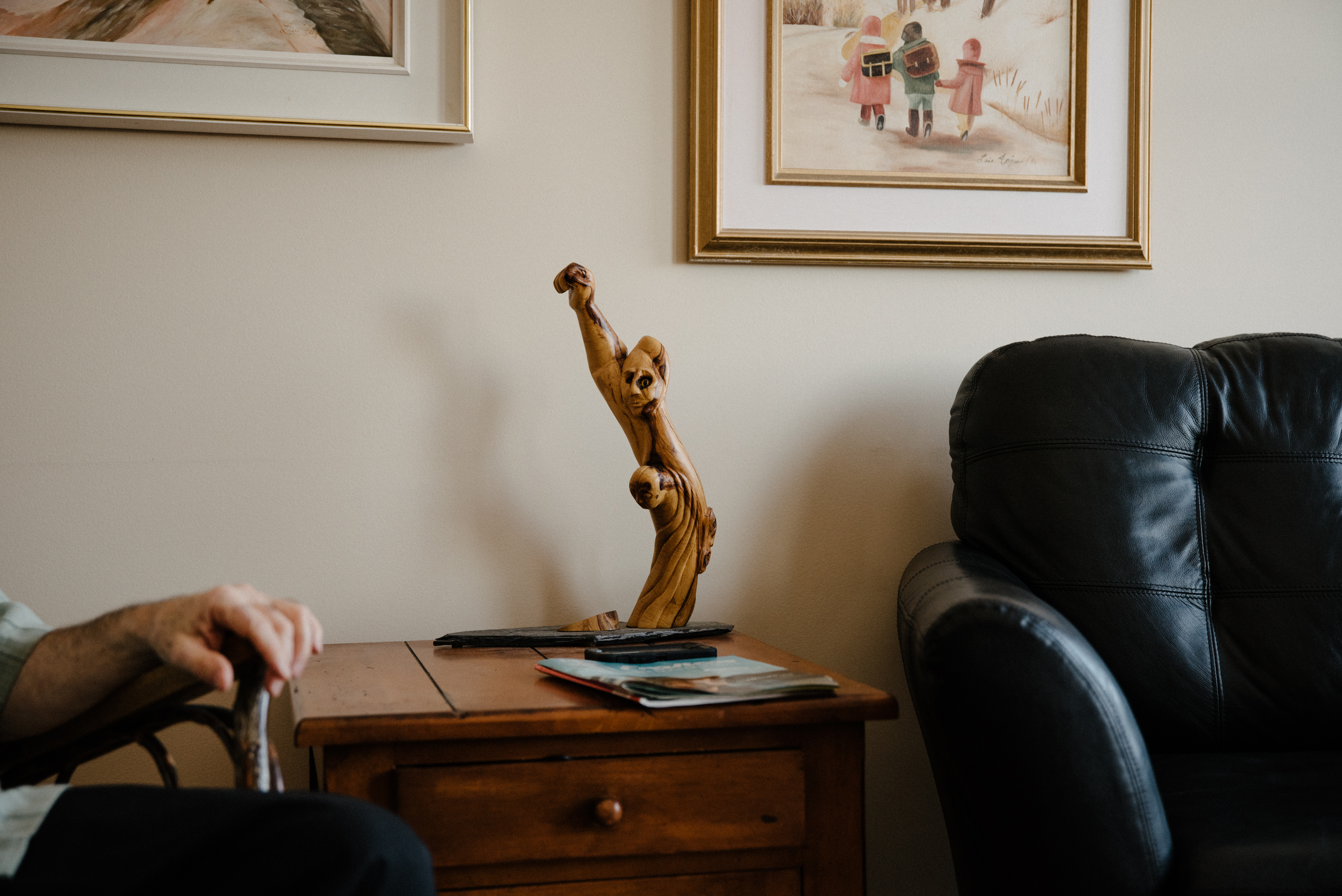La famille a toujours été au centre de la vie de Réginald. Ses cinq enfants (qu’il a eus avec trois femmes différentes) sont la grande fierté de ce papa poule. Il a eu le bonheur d’élever quatre de ses enfants, l’existence de son aînée ne lui ayant été révélée que récemment, il y a quelques années à peine. C’est tout une surprise qui l’attendait le soir où une amie de sa fille est débarquée chez lui, alors qu’il habitait Saint-Hippolyte. « Êtes-vous le Réginald Paquin qui a travaillé à Mont-Laurier dans les années 80? » Tout de suite, le déclic. « Je n’avais jamais eu de soupçon, je n’ai jamais, jamais su. Quand j’ai rencontré ma fille, elle m’a montré des photos d’elle quand elle était bébé. Je me suis mis à pleurer. J’avais perdu ça. » Il n’a pas perdu de temps à l’intégrer dans sa vie et elle a désormais rejoint son clan. Au mur du salon trône d’ailleurs la fresque familiale, sur laquelle Réginald semble veiller en bon patriarche. Des photos de graduation, des photos de famille, tous ses enfants y sont ainsi que ses deux petits-enfants. On y trouve également une photo du mariage de ses parents, décédés assez tôt dans un accident de voiture. « Ça, c’est ma mère. Elle s’est mariée à 16 ans. À cette époque, ils prenaient la photo, et ils l’amenaient à Montréal pour la faire colorier. Faut le faire! »