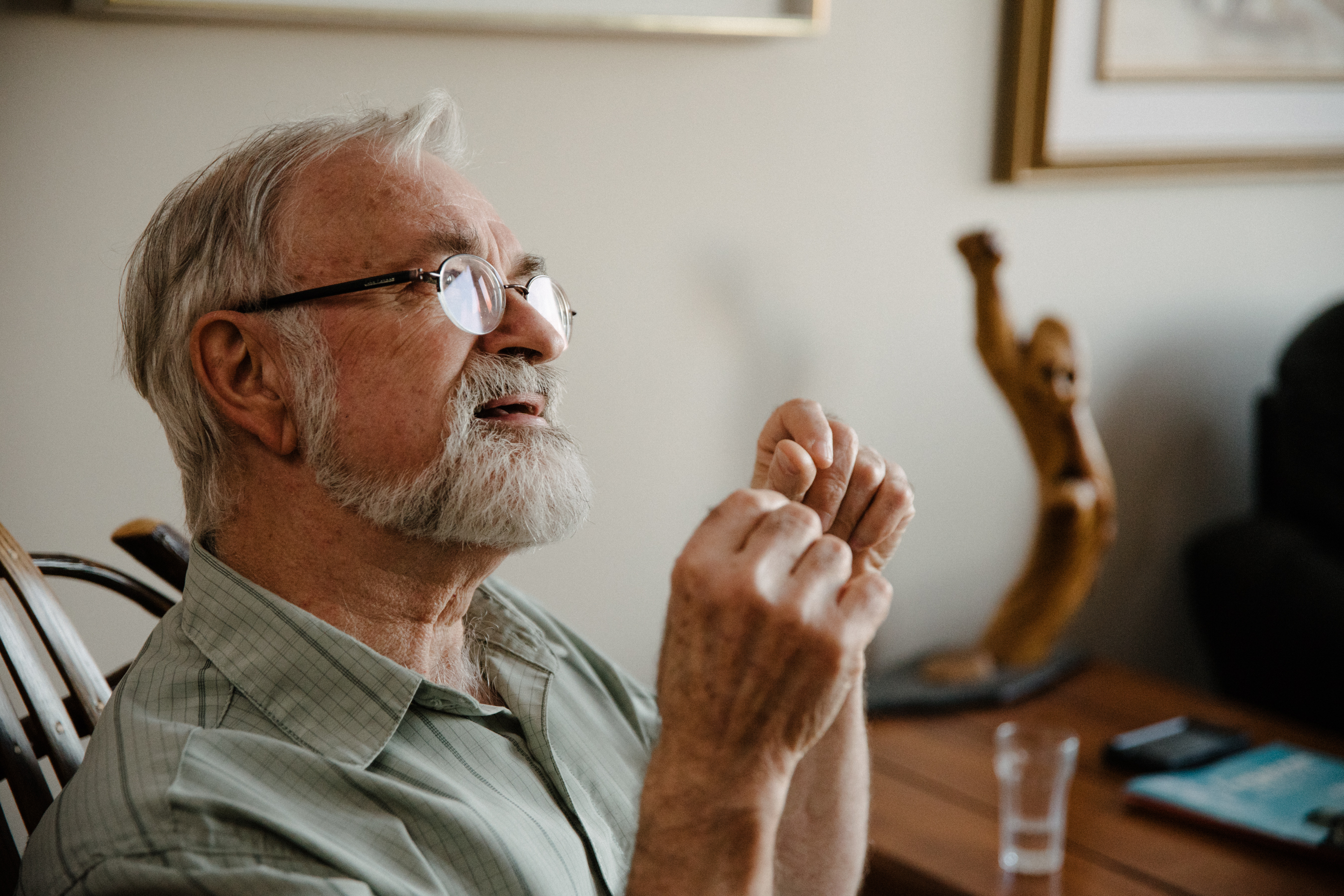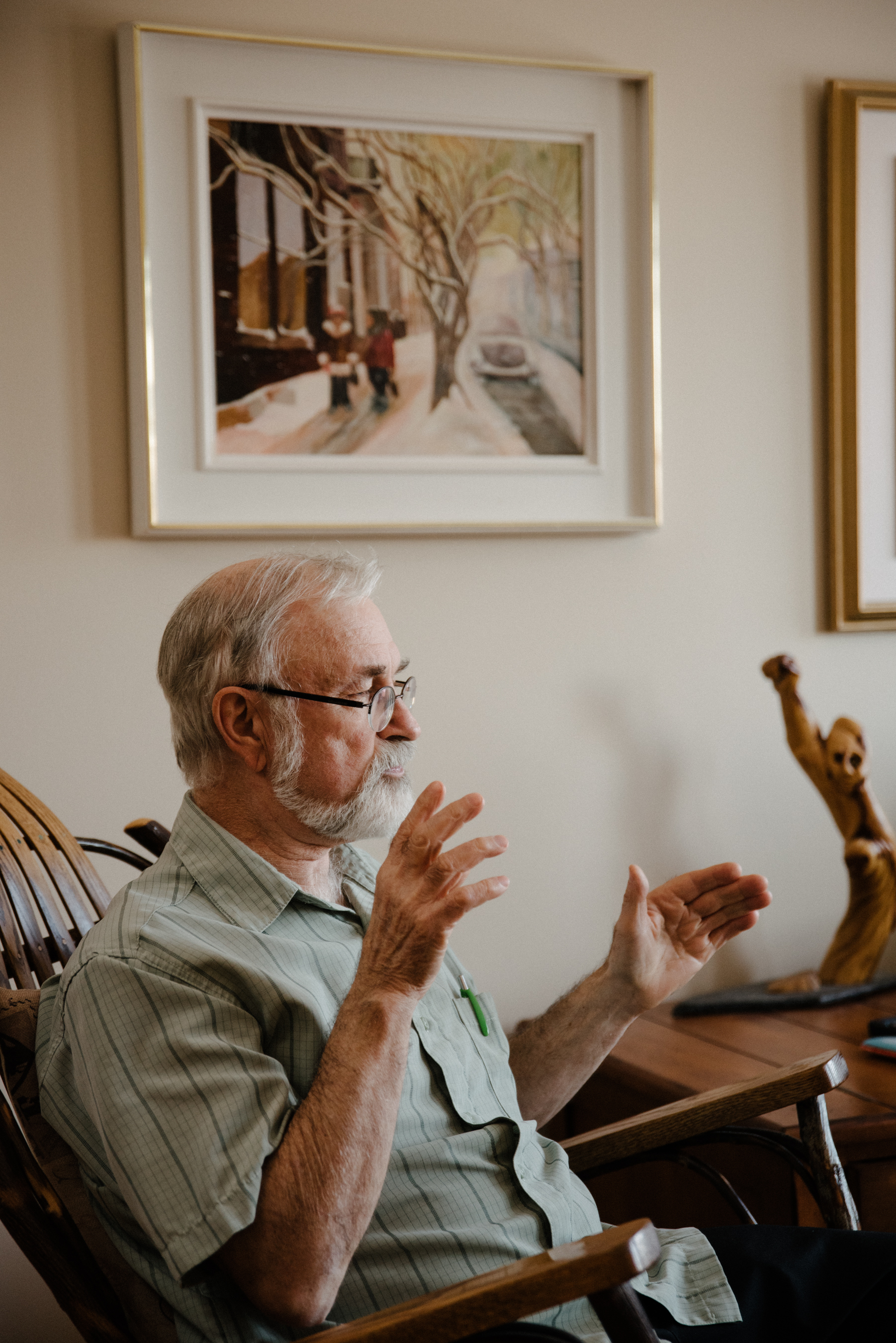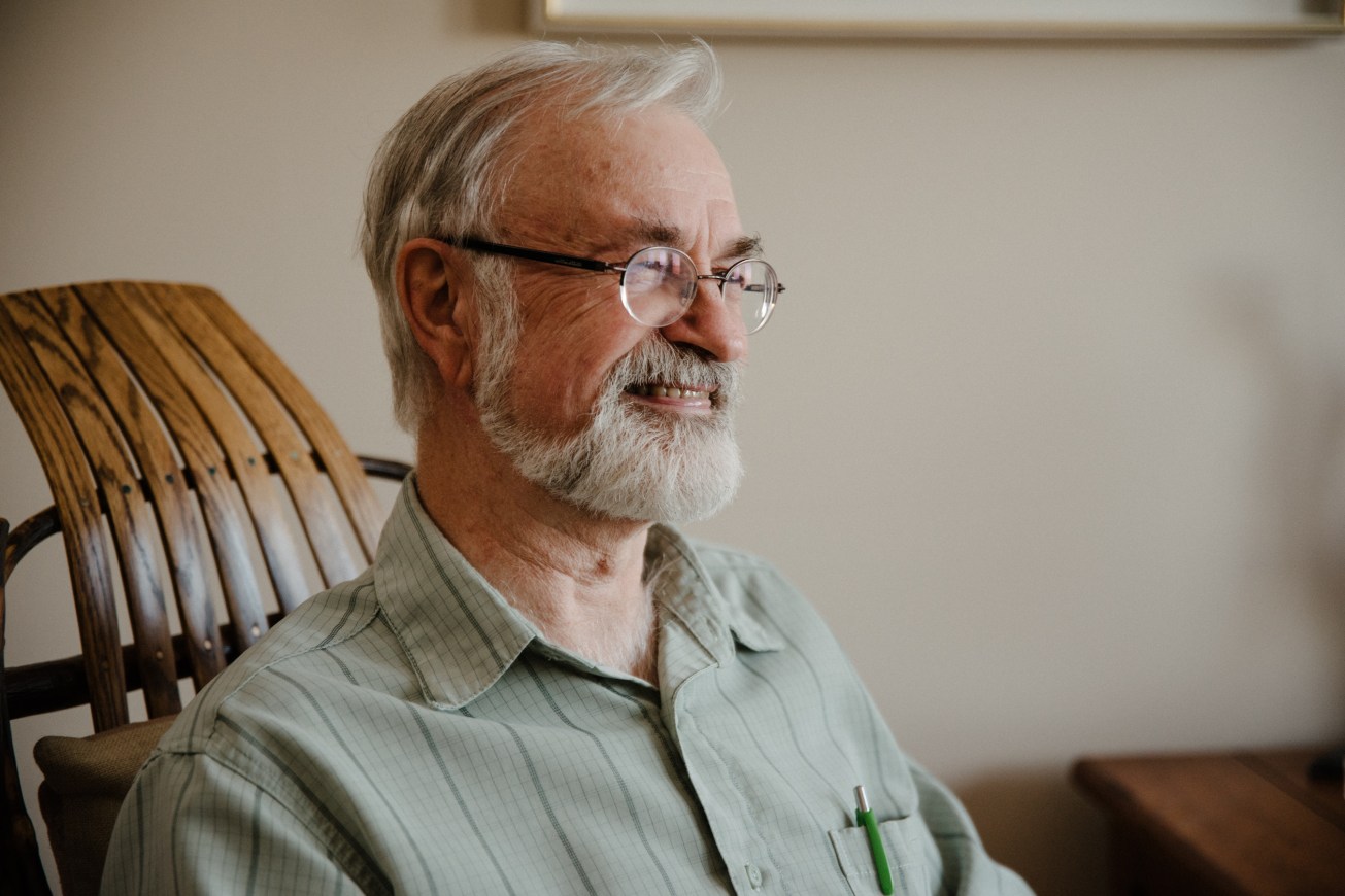 C’est un joyeux luron au regard espiègle qui nous reçoit dans son condo surplombant une place animée d’Hochelaga. « J’aime les gens, c’est pour ça que je reste ici. L’été, j’ouvre les portes, les fenêtres, et j’entends ce qui se passe en bas. Je suis aux premières loges! »
